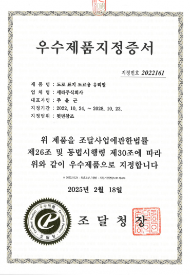 우수제품지정서