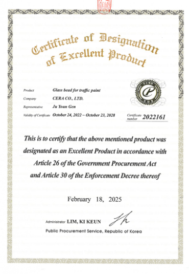 Certificate of Designation of Excellent Product