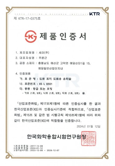 KS 제품 인증서