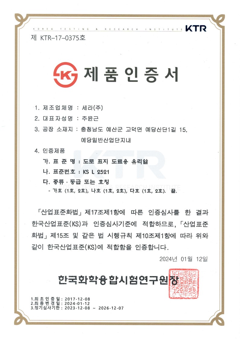 KS 제품 인증서 페이지 정보 작성자 최고관리자 댓글 0건 조회 247회 작성일 24-09-30 12:45 본문 KS 제품 인증서 목록 이전글우수제품지정서 25.03.25 다음글특허 23.06.05 댓글목록 댓글목록 등록된 댓글이 없습니다.
